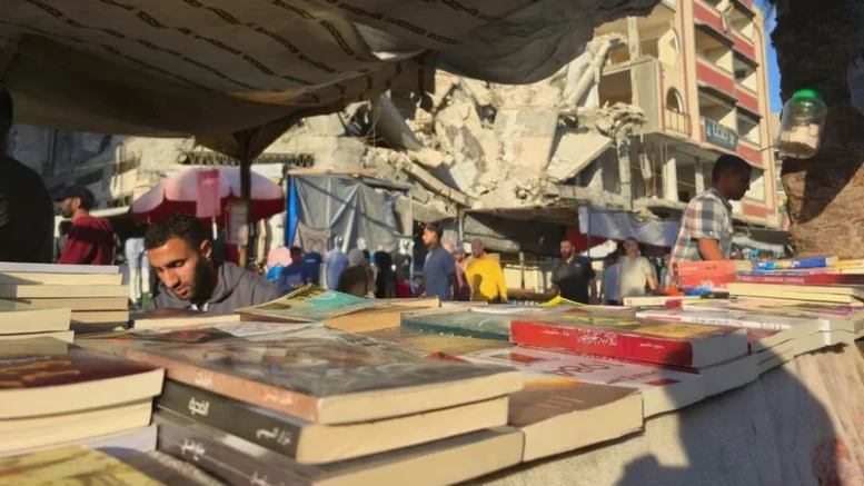 Circondati da edifici parzialmente o completamente crollati e da detriti di vecchi e recenti attacchi aerei, i libri e i loro argomenti sembrano fuori posto. Con titoli che parlano di speranza, amore, perdita e resistenza come a riflettere le emozioni impresse sui volti dei passanti, la bancarella li invita a fermarsi, leggere e riconnettersi con una parte di vita che il genocidio ha cercato di cancellare.